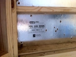 However, the main down side to using a product like radiant barrier decking is that it doesn’t take in to account thermal bypass on the rafters (meaning the heat is still moving through the rafter ends that are not covered with radiant barrier, and then radiating off the ends into the attic space). Using AtticFoil™ across the rafter bottoms does not allow for thermal bridging to occur, so you get complete protection from radiant heat gain through the roof, and overall, stapling foil to the bottom of your rafters yields the best results.