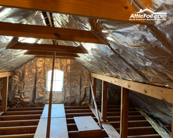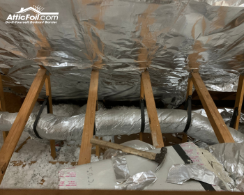 Create a green energy barrier by laying the radiant barrier foil out OVER the existing insulation on the attic floor. This method keeps heat out in summer and heat in during winter months, making it ideal for year-round benefit.