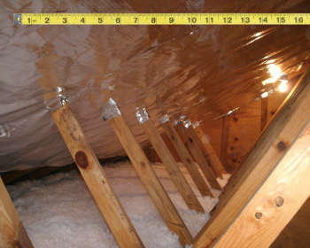 The Staple Up (also known as the Open-Ridge) method is the standard method used most often in WARM or HOT climates. This is especially true if your main objective is to reduce summer heat gain or if you have ductwork in the attic.